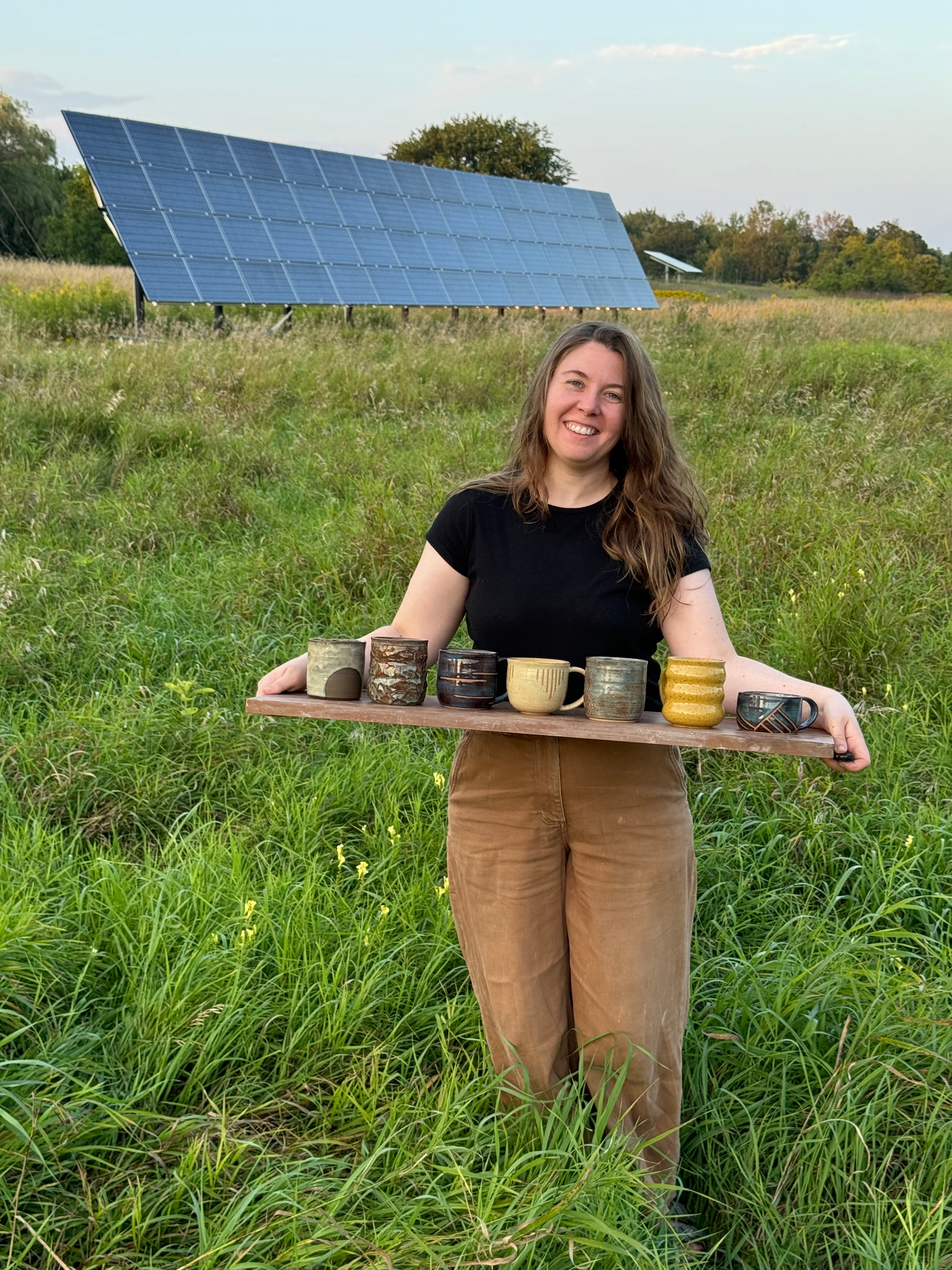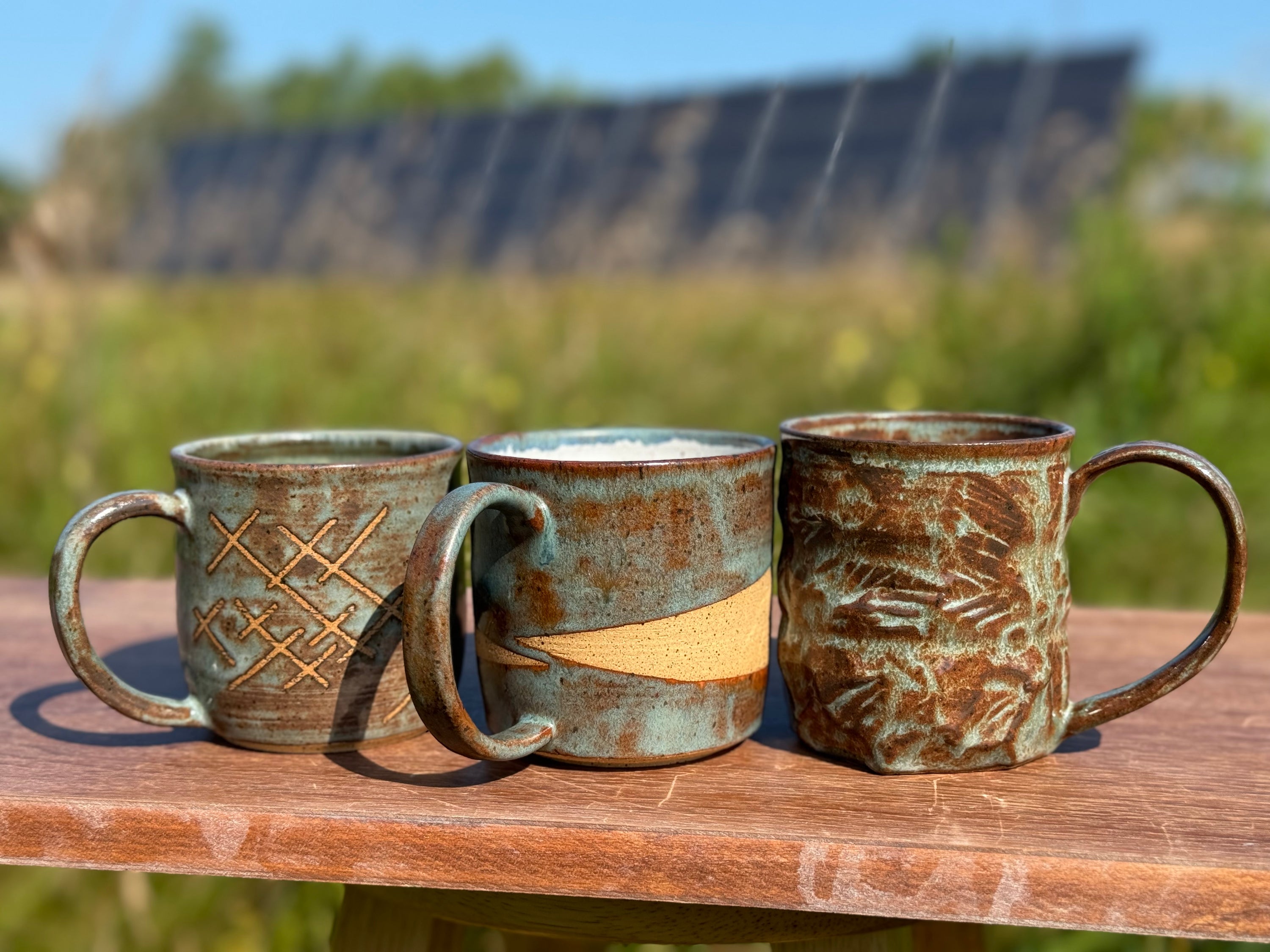 Sun Spun Pottery is a solar-powered pottery studio located in Amherst, Wisconsin. The kilns, the wheel, and even the heat are all electric, and the studio is connected to a 13kW solar array so we produce more electricity than we use.