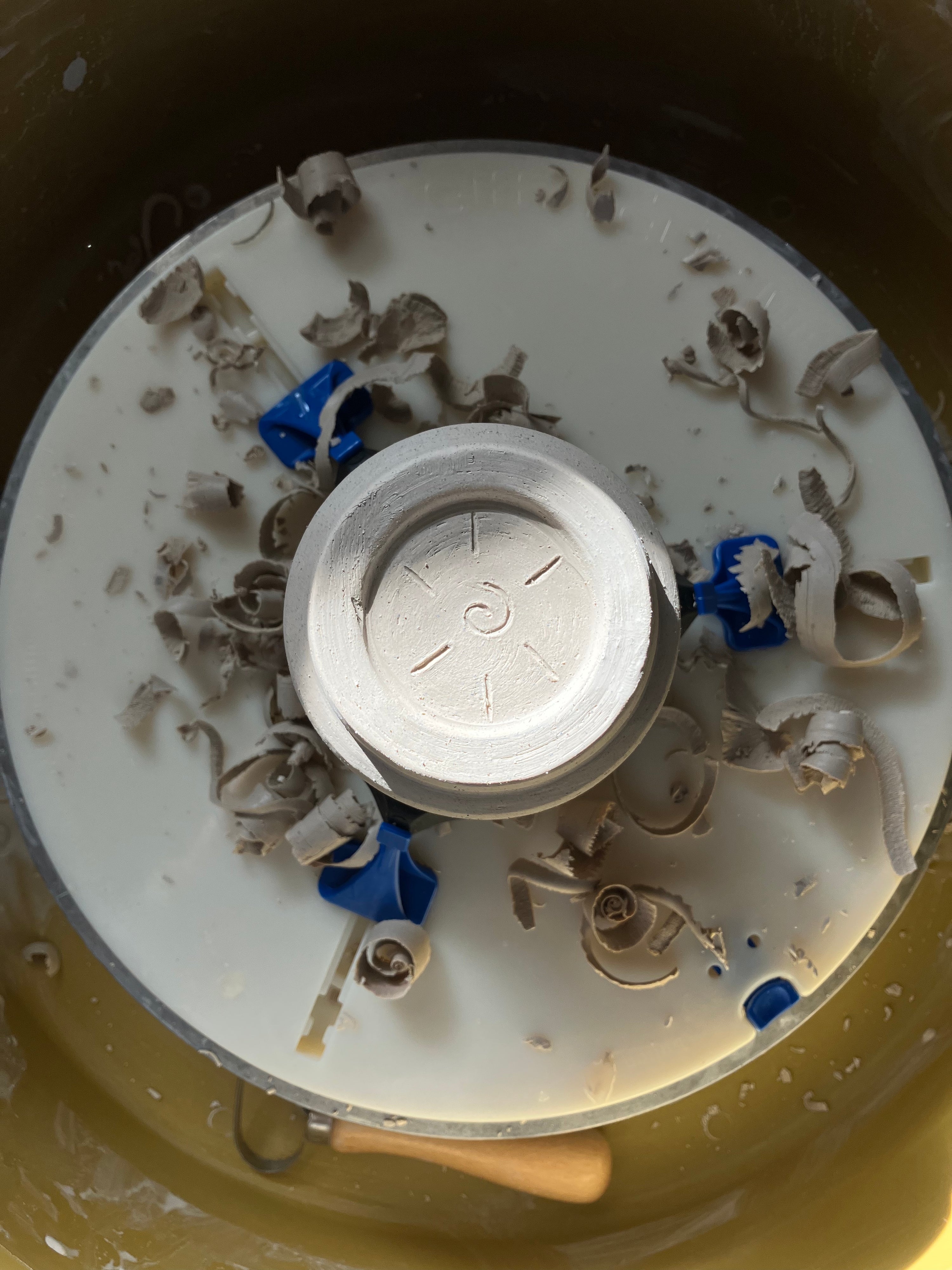 Pieces are wheel thrown, trimmed by hand, and then fired in an electric kiln. Pots are then glazed with food-safe glazes, and fired again.